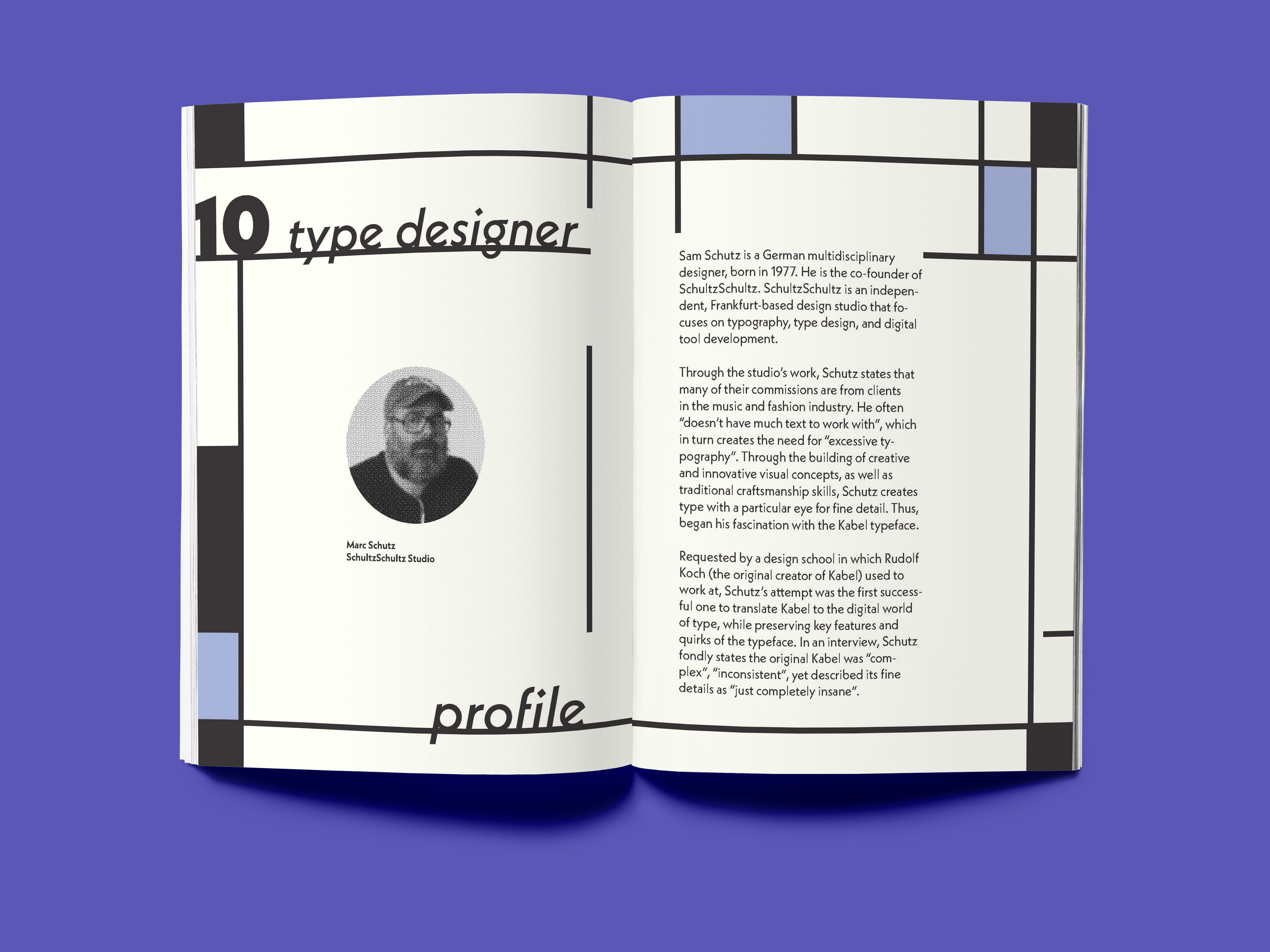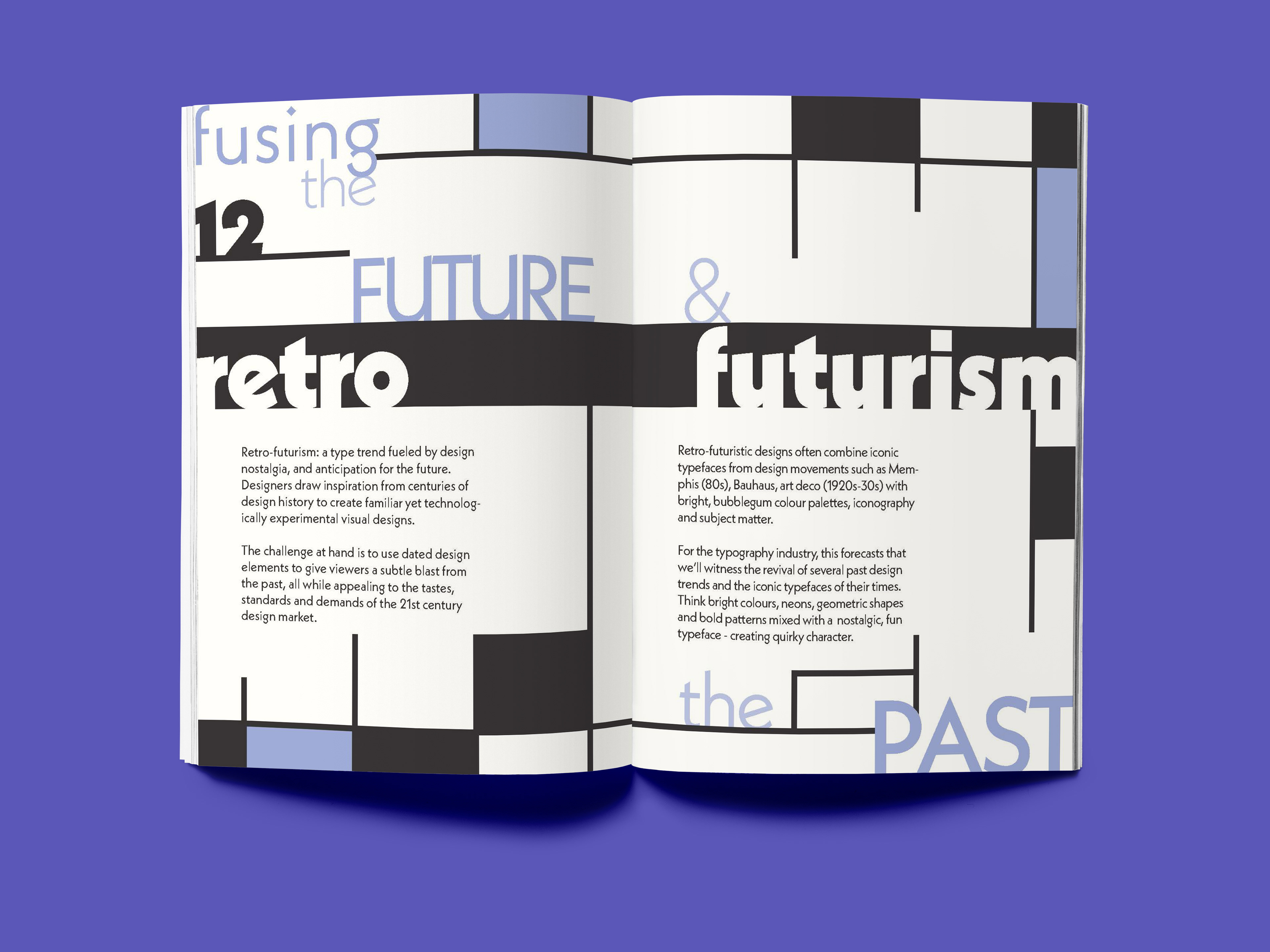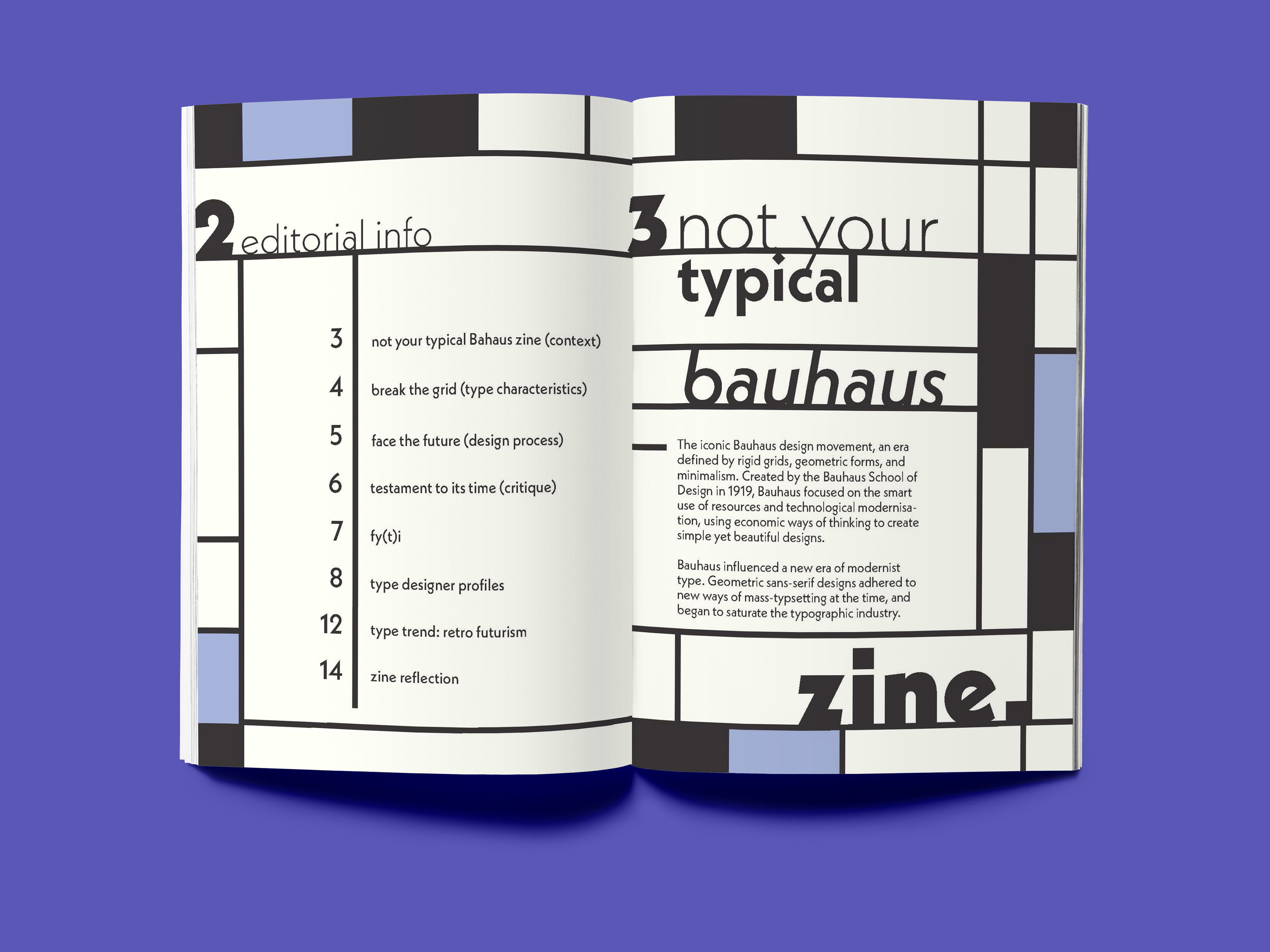 The task was to create a typographic zine and editorial composition showcasing a typeface of our choice, discussing the design context, formal elements and designers relating to the typeface.